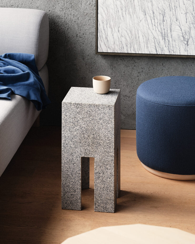 本展示では、ブランドの定番プロダクトである「STANDARD」ラインに加え、これまで自社企画の展示会やイベントを中心に発表してきた「OMORI」シリーズを、見本市として初めてご紹介いたします。石の重さをテーマに、石材の性質や存在感を様々な視点で活かしたOMORIシリーズを、実際にご覧いただける機会となります。